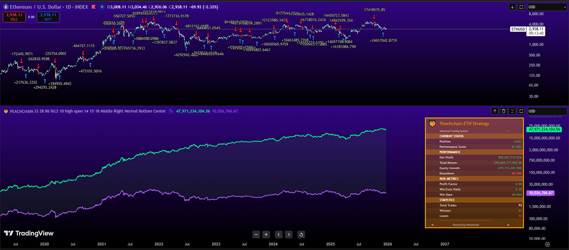 Multi-factor selection table for Ethereum, evaluating metrics such as momentum, volatility, and volume to identify prime entry and exit points.